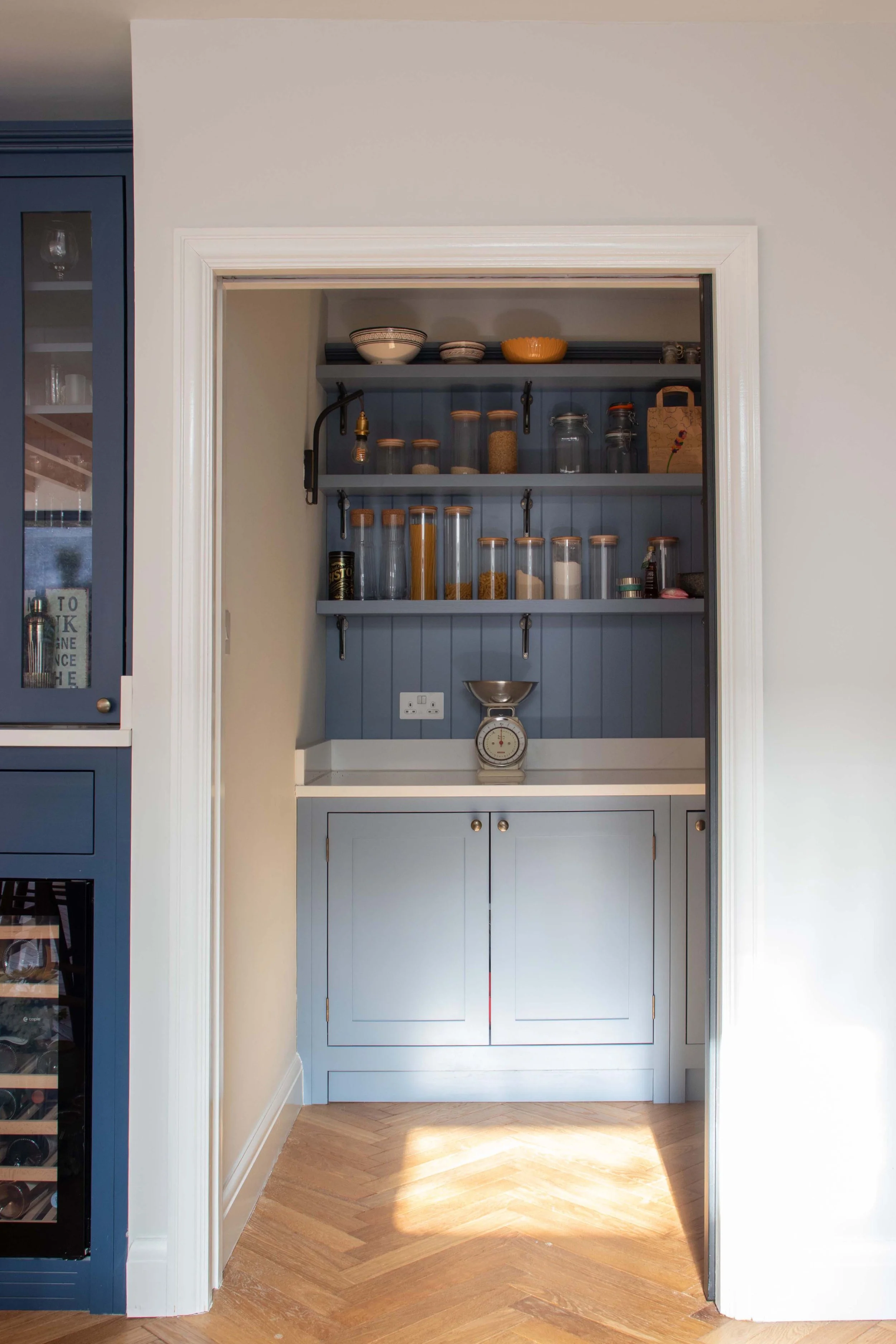 There is also a separate pantry, just off the kitchen, which provides lots of food storage and the perfect place to keep all the worktop appliances. A special nook in the kitchen houses a wine fridge and a glazed bar cabinet.